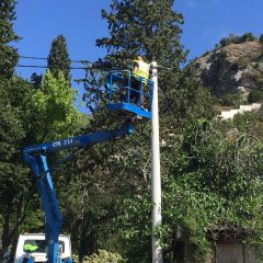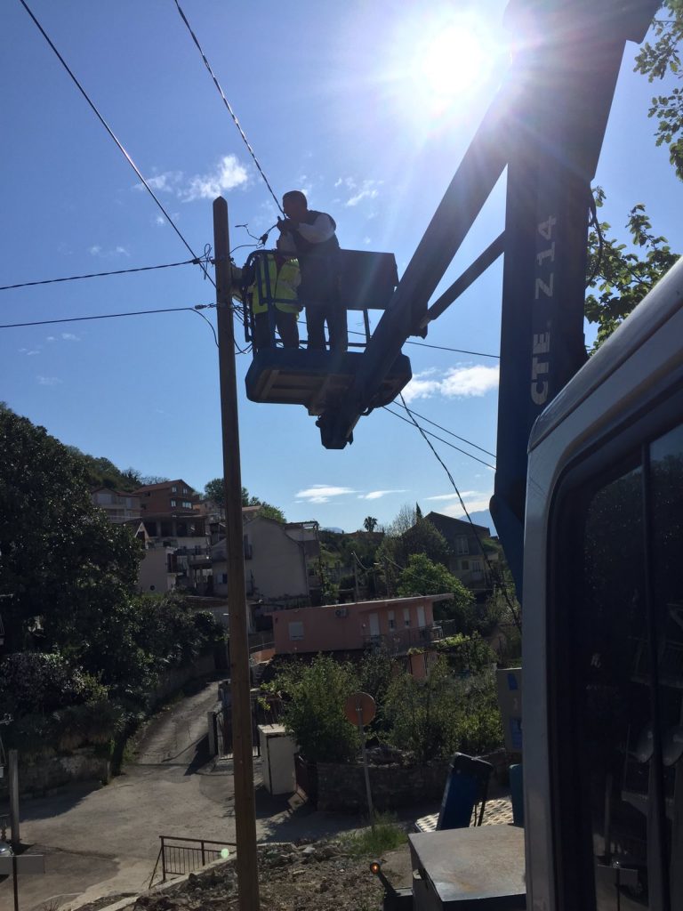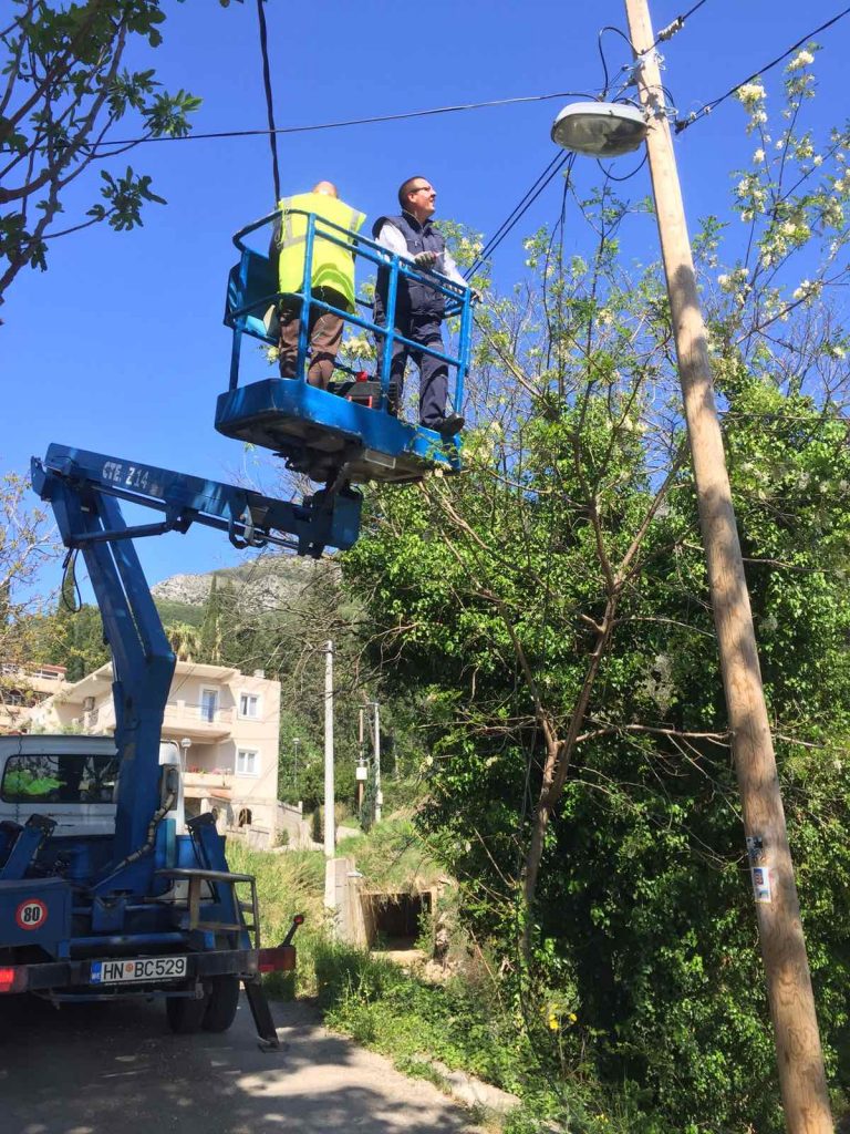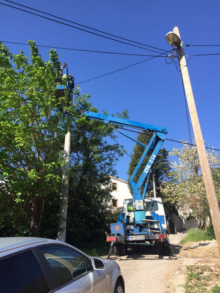Na mjestu gdje je prekinut vazdušni kabl, potavljen je novi u dužini od 25m, obavljeni neophodni elktro radovi i ponovo je u funkciji 10 led lampi.