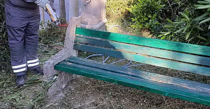 Zaposleni u sektoru za održavanje lokalnih puteva i vodotokova Komunalno Stambenog doo, završavali su posao oko farbanja materijala za stubove javne rasvjete dok je u naselju Ratiševina rađeno na popravci i farbanju mobilijara.
