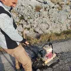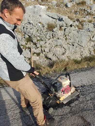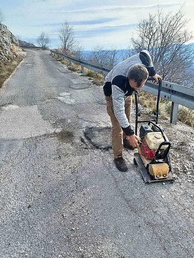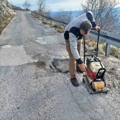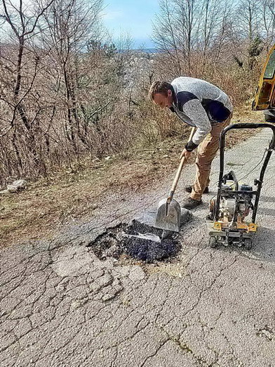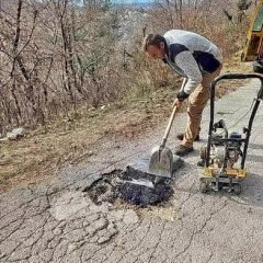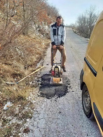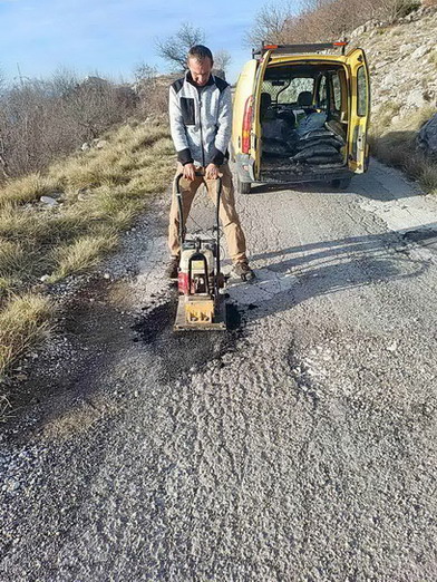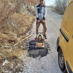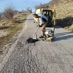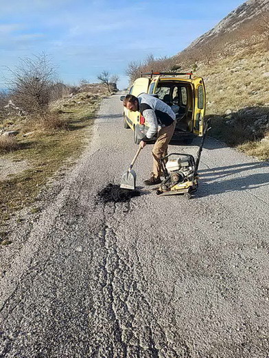 Zaposleni u sektoru za održavanje lokalnih puteva i vodotokova Komunalno Stambenog doo, završavali su sanaciju udarnih rupa hladnim asfaltom na putnom pravcu prema Dugonji.