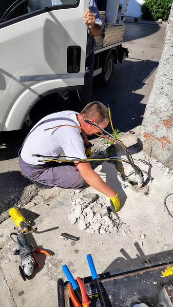 Zaposleni u sektoru za upravljanje javnom rasvjetom Komunalno Stambenog doo, završili su radove, u ulici Orjenski bataljon (iza prodavnice”Aroma”), na uklanjanju oborenog stuba rasvjete. Odrađeno je štemanje, uklanjanje kvara, kratkog spoja, na kablu. Odrađeno je montiranje spojnice, montaža i spajanje novog stuba i puštanje rasvjete u rad.