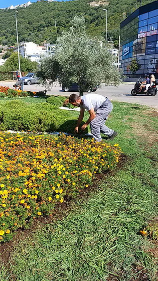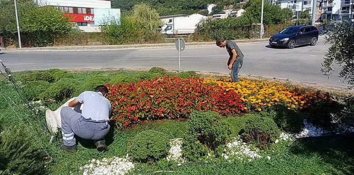 Zaposleni u sektoru uređenja i održavanja javnih zelenih površina Komunalno Stambenog doo, radili su na pljevljenju sezonskog cvijeća na kružnom toku u Meljinama.