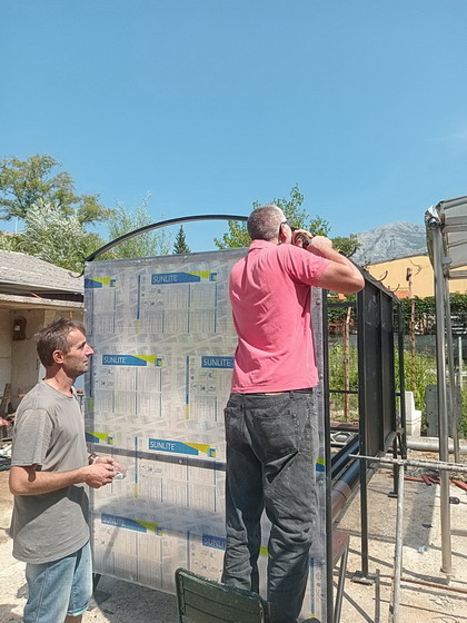 Zaposleni u sektoru za održavanje lokalnih puteva i vodotokova Komunalno Stambenog doo, završili su monatažu leksana na nastrešnici kućice autobuskog stajališta u radioničkom prostoru. Montaža na stajalištu planira se nakon montaže oluka.