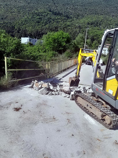 Zaposleni u Sektoru za održavanje lokalnih puteva i vodotokova Komunalno Stambenog doo, završili su sječenje i štemanje oštećenog betona na putu kao i armiranje i betoniranje istog ispod salona “Citroen” u Sutorini.