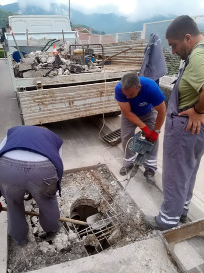 Zaposleni u Sektoru za održavanje lokalnih puteva i vodotokova Komunalno Stambenog doo, završili su popravku oštećenja na kamenom poplačanom putu na Škveru dok su u Meljinama kod vojne bolnice odradili štemanje, armiranje i betoniranje oštećene slivne rešetke.