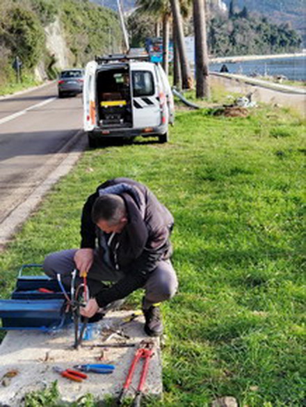 Zaposleni u Sektoru za upravljanjem javnom rasvjetom, Komunalno Stambenog doo, završili su kod hotela “Park” u Bijeloj spajanje kablova podzemne linije rasvjete škaro klemama u stopi oborenog stuba, poslije saobraćajnog udesa. Linija prema hotelu radi.