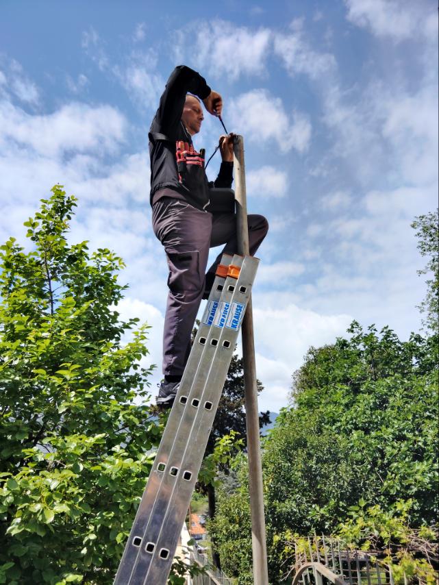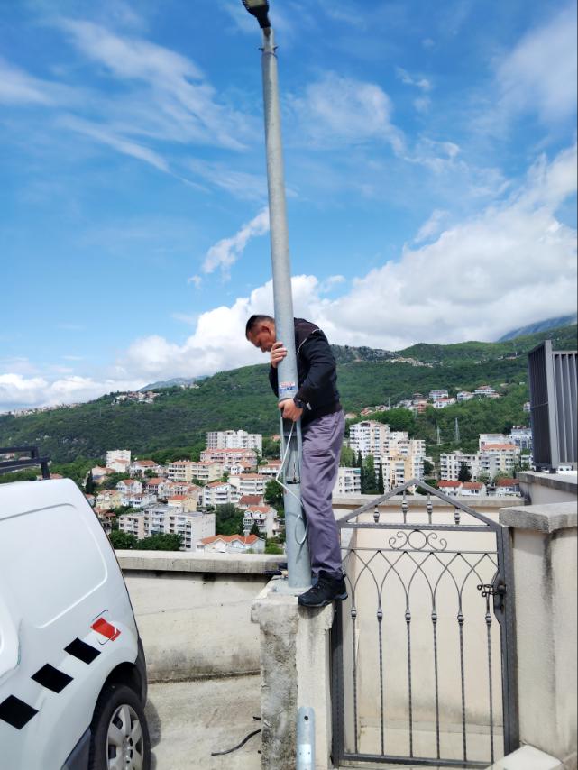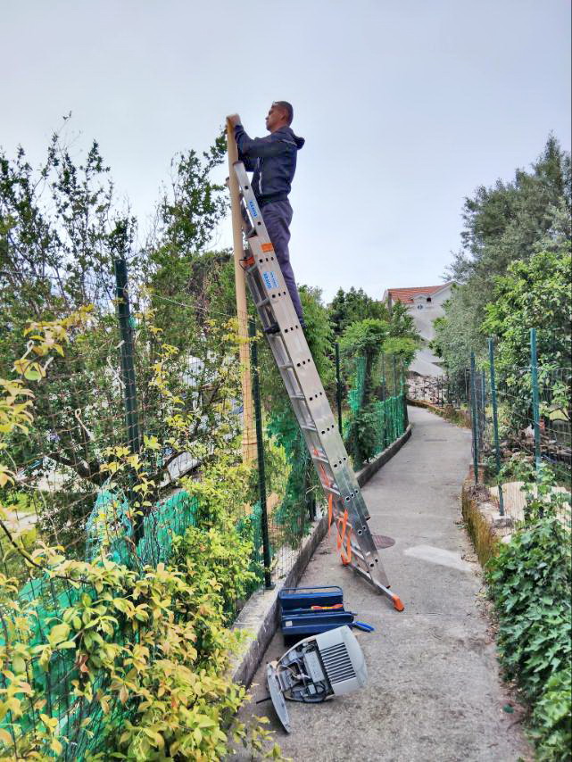 - demontaža stuba, izvlačenje kablova i spajanje(iščupao bager). Izvršena montaža stuba u ulici Nikole Ljubibratića kod broja 16.