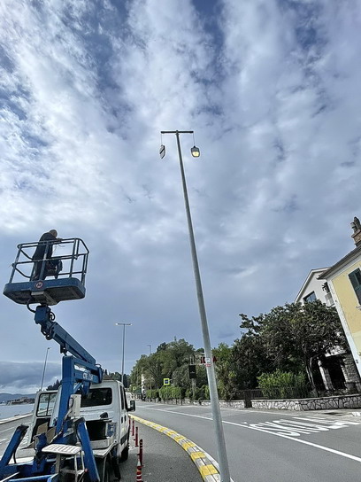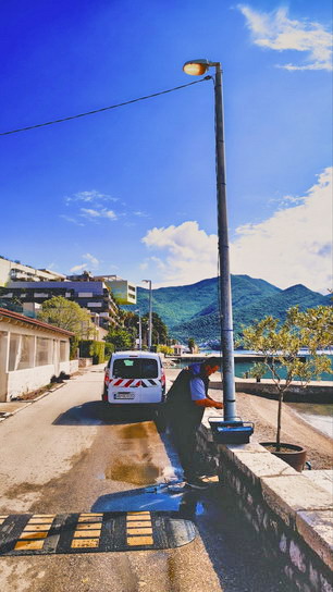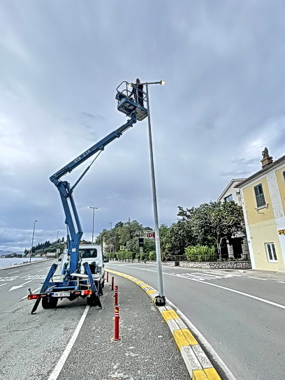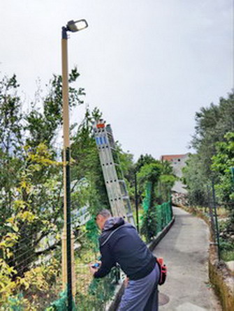 - kod trajekta, ispitivanje i popravka kvara na liniji od trajekta do škole, zamjena 2 oštećene led lampe na duploj liri magistralnog stuba rasvjete(lampe polomljene i stub ulubljen)