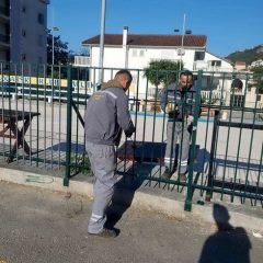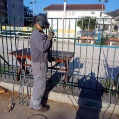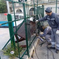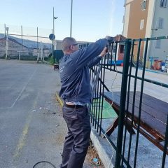 Zaposleni u sektoru za održavanje lokalnih puteva i vodotokova Komunalno Stambenog doo, završavali su u krugu radionice izradu tronožaca za saobraćajne znake dok su u Meljinama radili na sanaciji polomljene ograde i njenog farbanja kod sportskih terena.