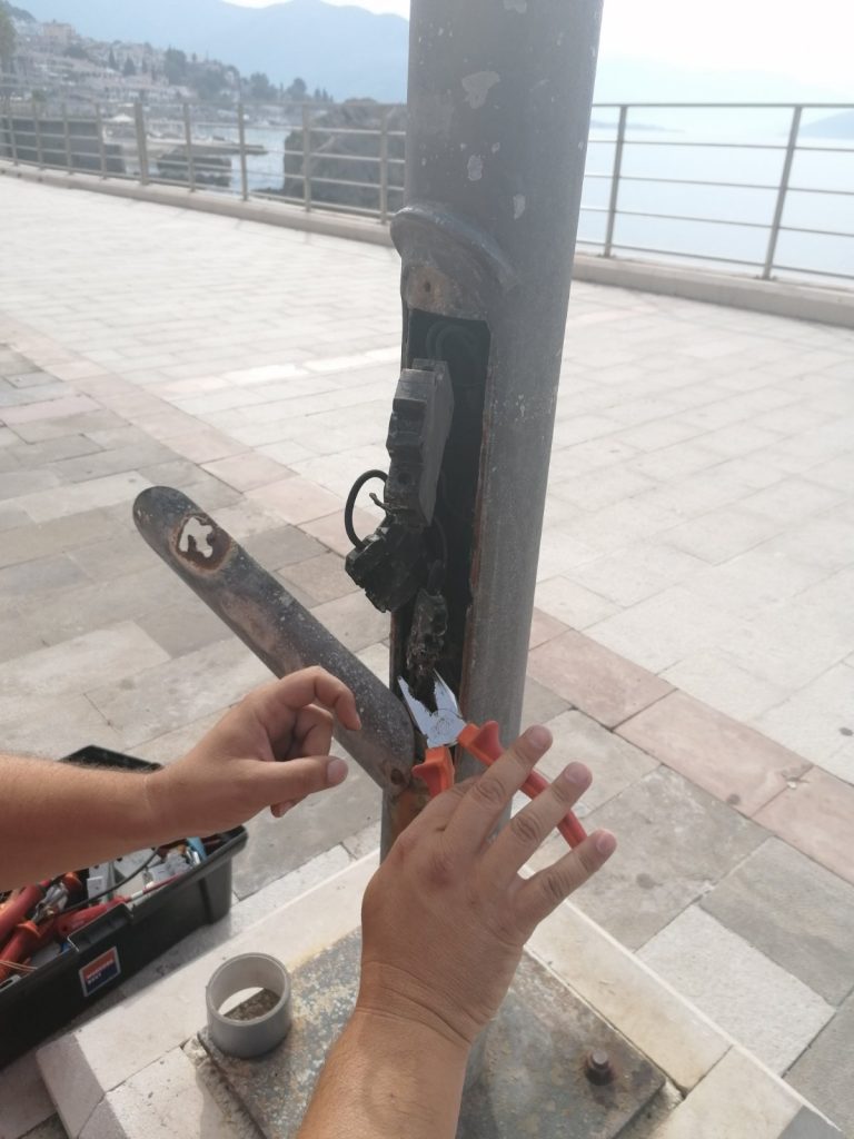 Zaposleni u Sektoru za održavanje javne rasvjete, Komunalno Stambenog doo, završili su na šetalištu V Danica od Škvera prema hotelu “Plaža” kvar u stubu javne rasvjete u kome je došlo do paljenja kablova. Kablovi su sređeni, ponovo spojeni i rasvjeta puštena u rad.