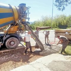 Zaposleni u sektoru za održavanje lokalnih puteva i vodotokova Komunalno Stambenog doo, započeli su sanaciju AB ploče na autobuskom stajalištu u Đenovićima.