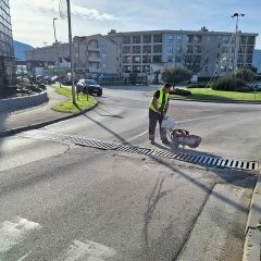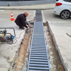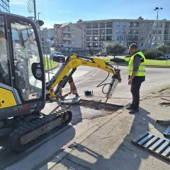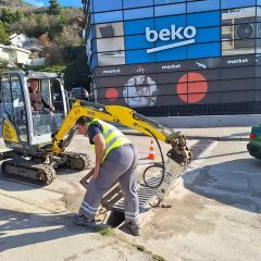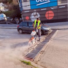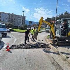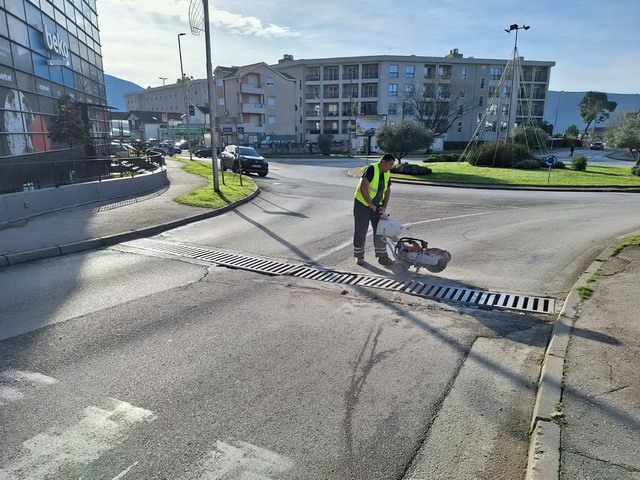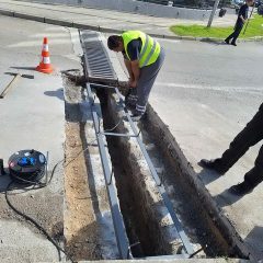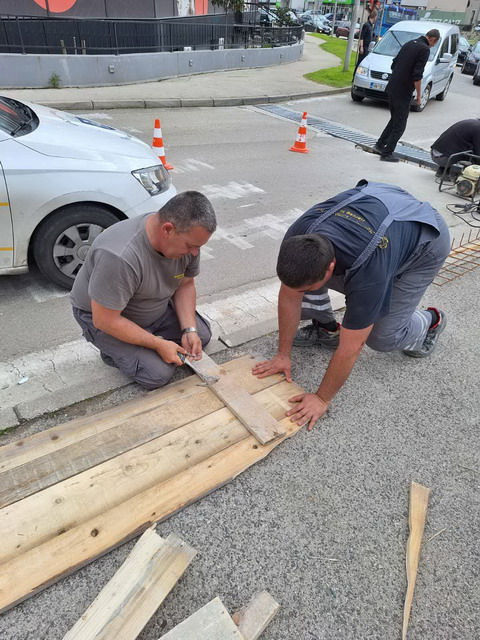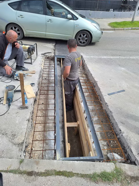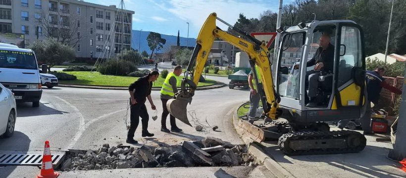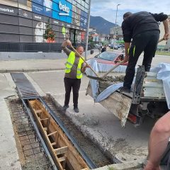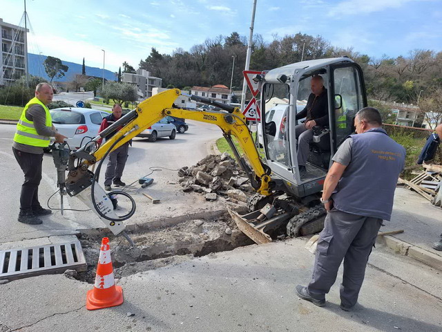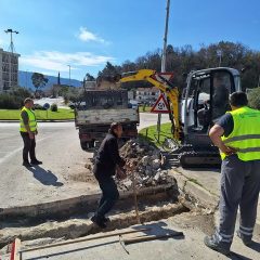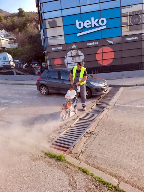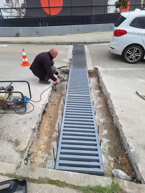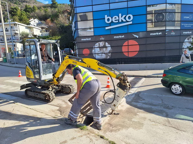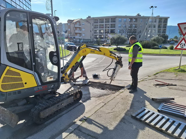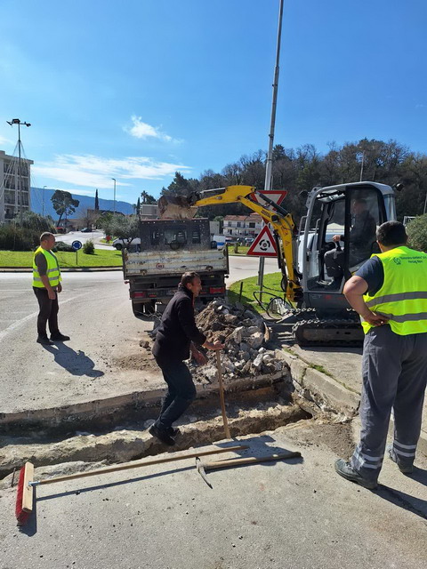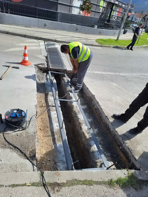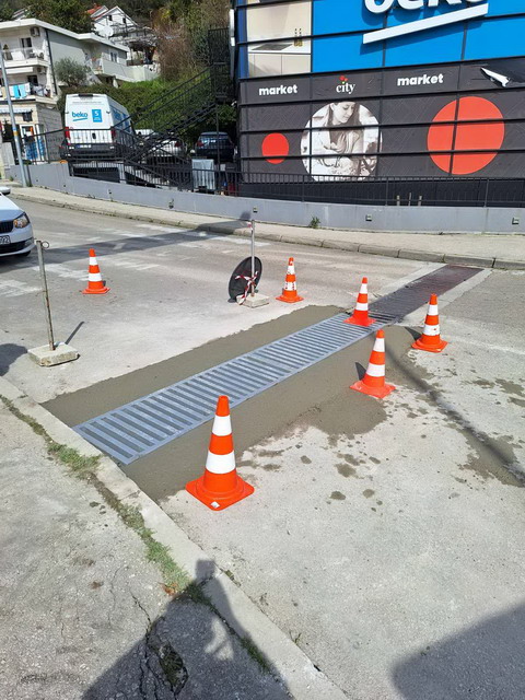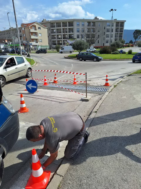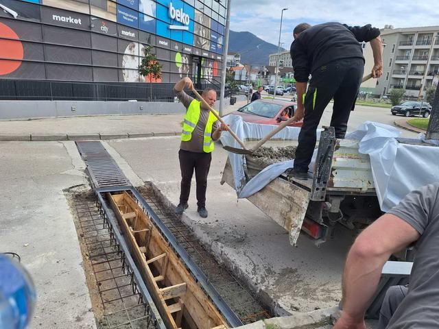 Zaposleni u Sektoru za održavanje lokalnih puteva i vodotokova Komunalno Stambenog doo, poslije izrade rešetke za atmosfersku vodu u Meljinama na putu prema Podima, novoizgrađena je montirana. Rađeno je zasjecanje putne površine, mašinski iskop materijala oko stare da bi zatim bilo završeno šalovanje i armiranje. Poslije betoniranja dio nove rešetke je postavljen.