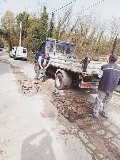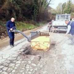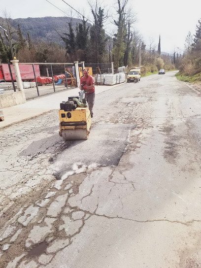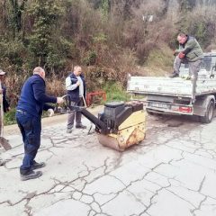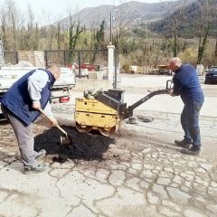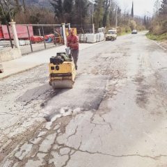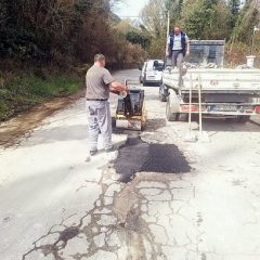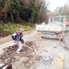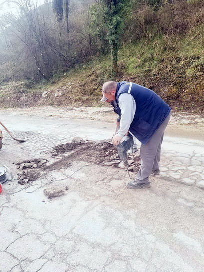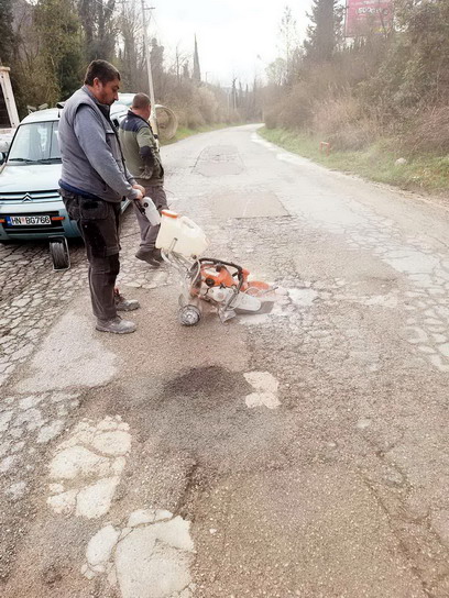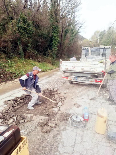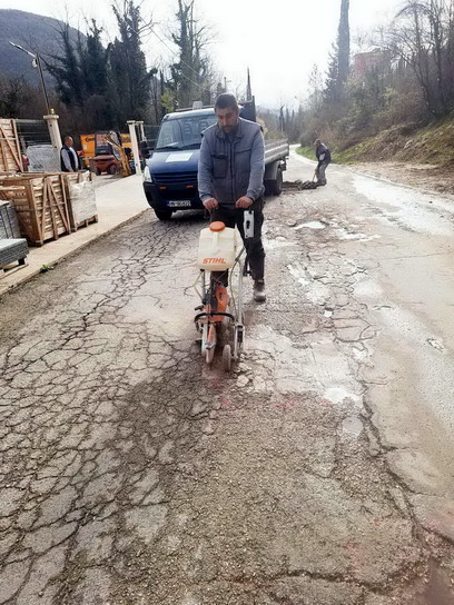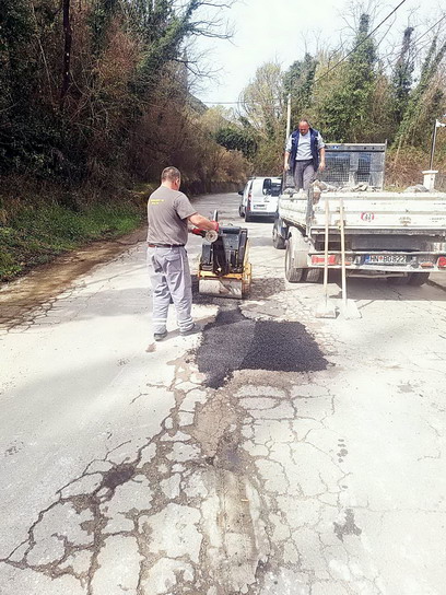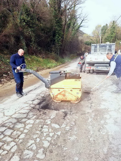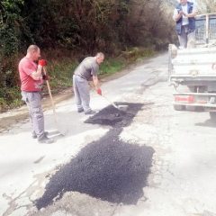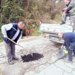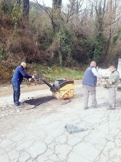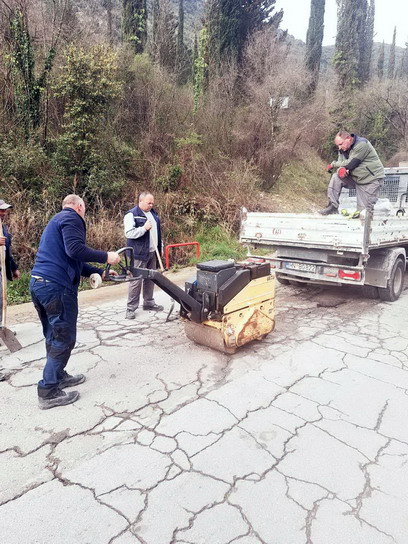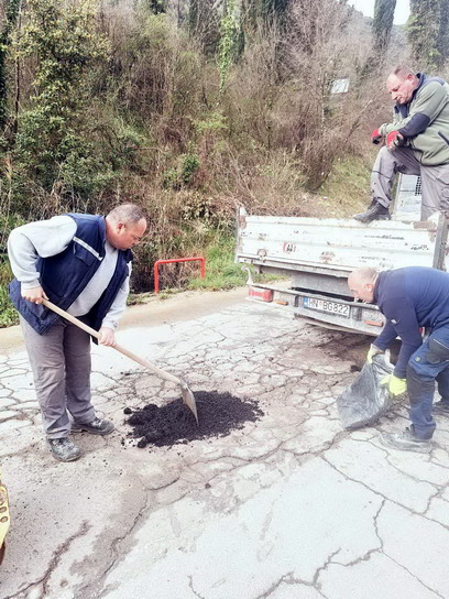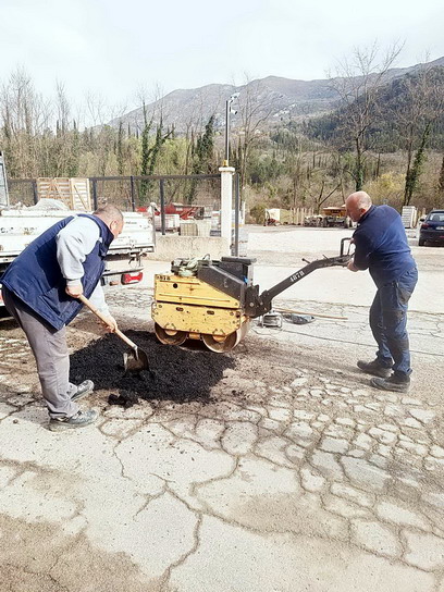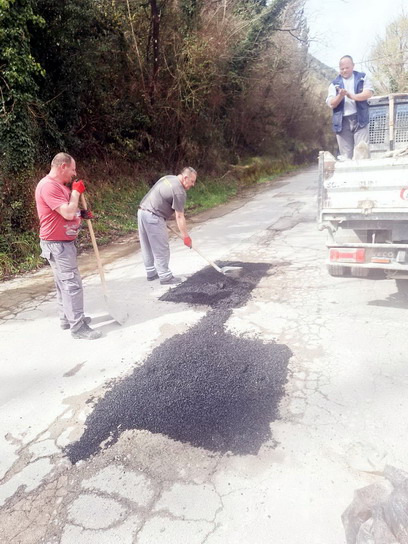 Zaposleni u sektoru za održavanje lokalnih puteva i vodotokova Komunalno Stambenog doo, završavali su poslove sanacije udarnih rupa, hladnim asfaltom u trupu puta na putnom pojasu prema naselju Prijevor.