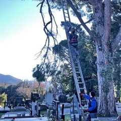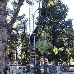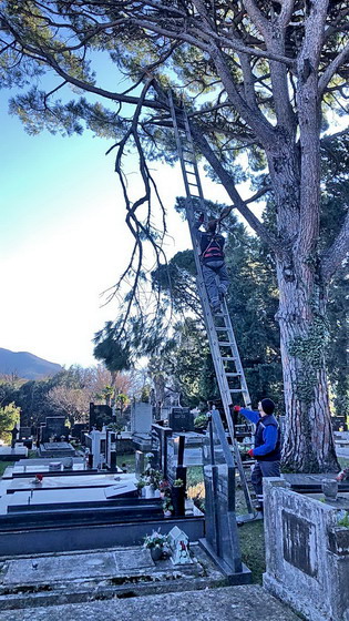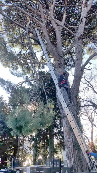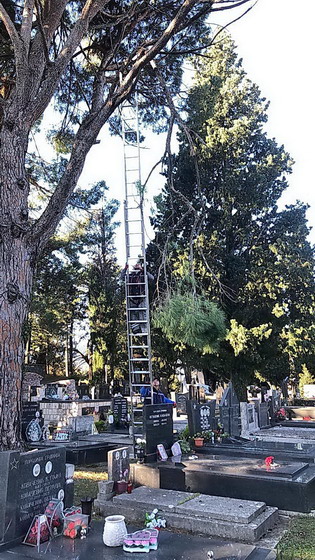 SJEČA POLOMLJENE OD VJETRA GRANE PINIJE NA GRADSKOM GROBLJU