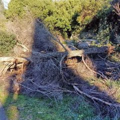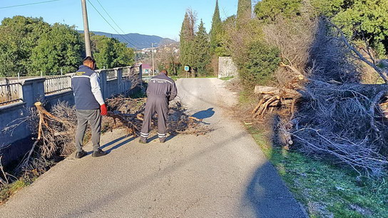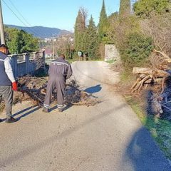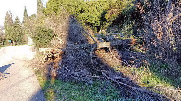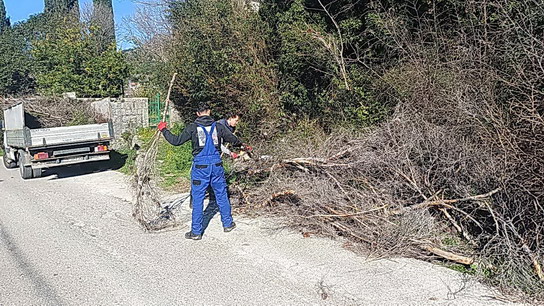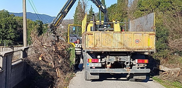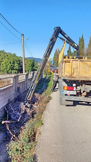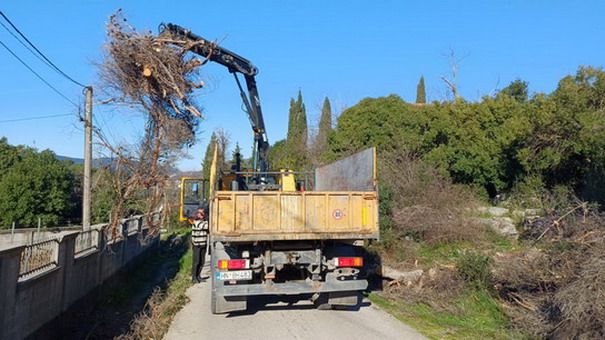 Zaposleni u sektoru uređenja i održavanja javnih zelenih površina Komunalno Stambenog doo,završili su uklanjanje oborenog stabla Pinije iz kanala u naselju Podi, između MZ Podi i škole.