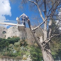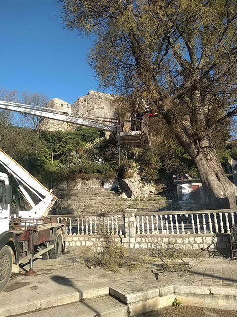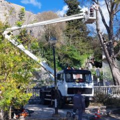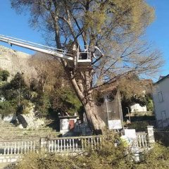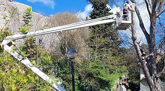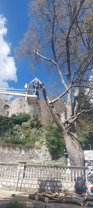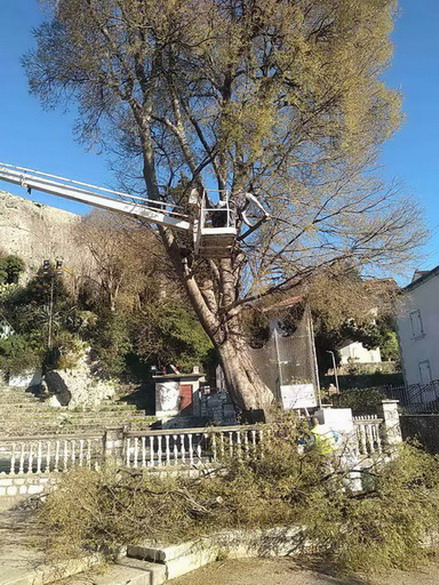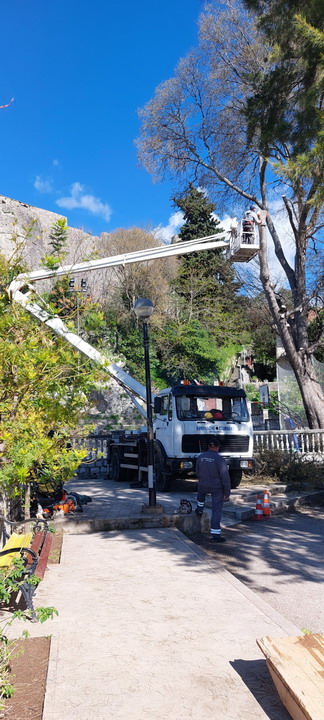 Zaposleni u Sektoru uređenja i održavanja javnih zelenih površina Komunalno Stambenog doo, završili su uklanjanje ramenih suvih grana stabla Košćele, po nalogu Sekreterijata za komunalne djelatnosti, na košarkaškom igralištu na Karači.