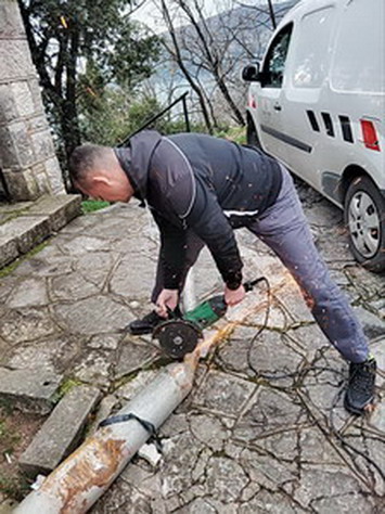 Zaposleni u sektoru za upravljanje javnom rasvjetom Komunalno Stambenog doo, završili su uklanjanje oborenog stuba rasvjete u Manastirskoj ulici. Kablovi su spojeni i izolovani.