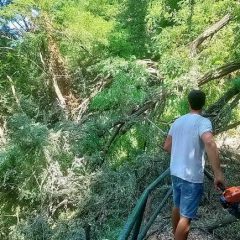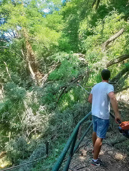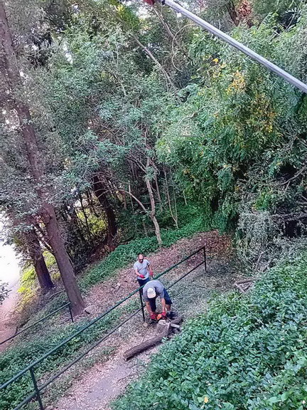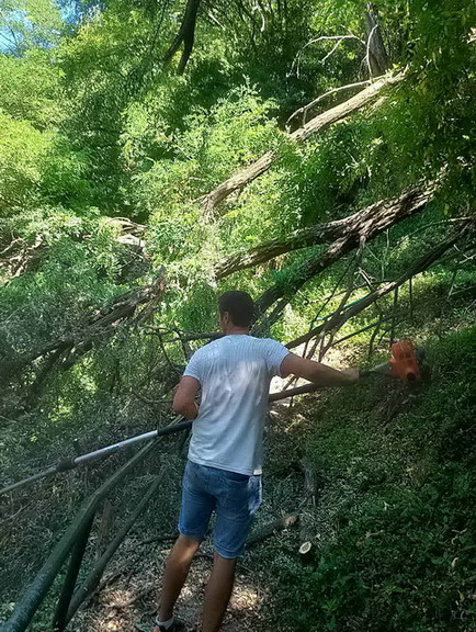 Zaposleni u Sektoru uređenja i održavanja javnih zelenih površina Komunalno Stambenog doo, završili su uklanjanje palih stabala Melije i Bagrema koje su pale na stepenište koje od crkve Sv. Ane na Savini vode niže prema donjem putu. Stabla su preprečila puteljak i prestavljala opasnost za pješake.