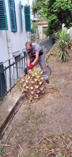 Zaposleni u sektoru uređenja i održavanja javnih zelenih površina Komunalno Stambenog doo, završili su kod zgrade Turističke organizacije, uklanjanje palmi koja su ugrožavala potporni zid pored same zgrade.
