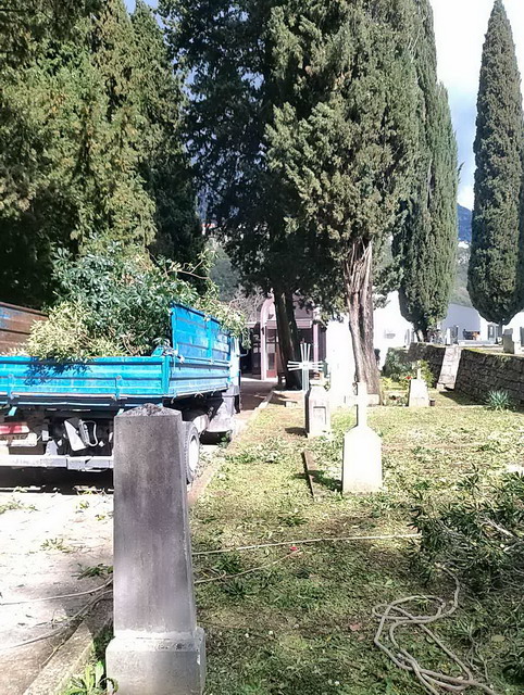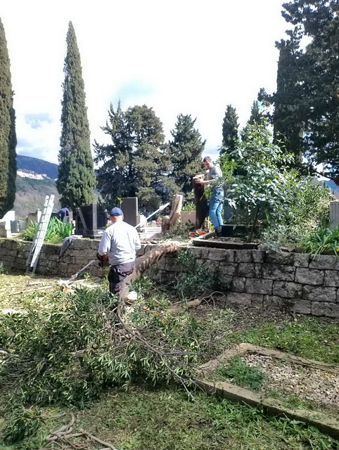 Zaposleni u Sektoru uređenja i održavanja javnih zelenih površina Komunalno Stambenog doo, završili su uklanjanje stabla Pitospora sa sakupljanjem i odvozom zelenog otpada na gradskom groblju na Savini.