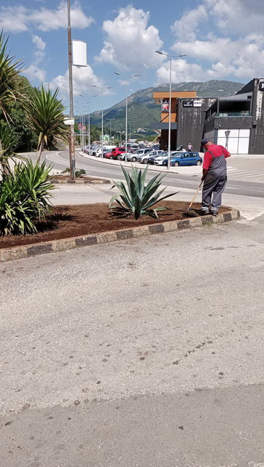 Zaposleni u Sektoru uređenja i održavanja javnih zelenih površina Komunalno Stambenog doo,završili su uređivaje skverova u blizini tržnog centra HDL Laković kao i košenje sa grabuljanjem i odvozom zelenog otpada na kružnom toku u Meljinama.