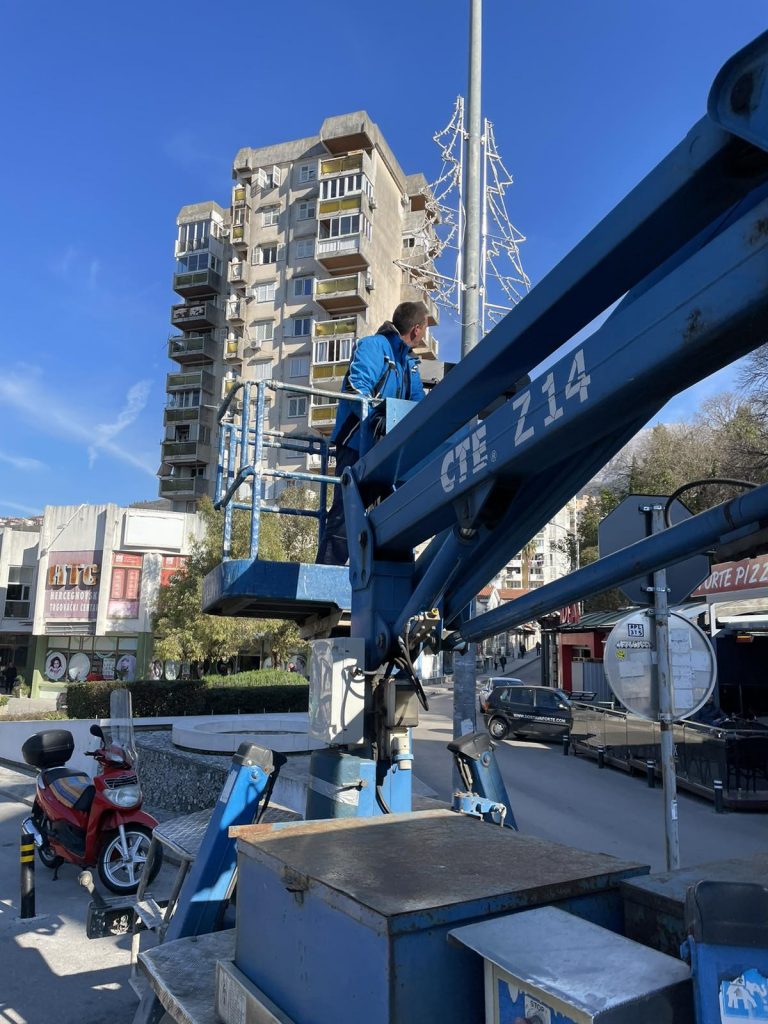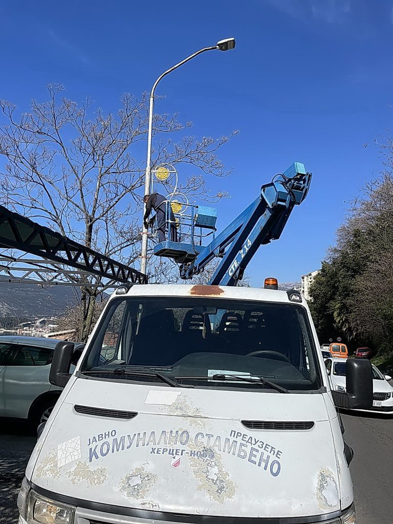 Zaposleni u Sektoru za upravljanje javnom rasvjetom Komunalno Stambenog doo, završili su demontažu svih preostalih novogodišnjih ukrase sa stubova javne rasvjete.